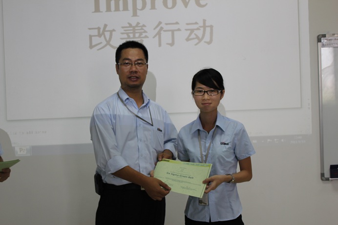 2011年7月到8月,東莞曼頓顧問公司對格**汽配公司進行了長達2個月之久的6sigma綠帶培訓。此次綠帶培訓從理論課堂,到項目悉心輔導,曼頓顧問的老師表現出了極其細致和專業的水平,獲得客戶的高度認可。參訓的27位學員都成功參與了一個管理項目的實施,成功獲得綠帶證書,他們一共完成了5個管理項目,為公司的管理改善找到了有效的方法,并帶來了實際的效果,直接獲得了經濟收益。而且,目前該企業已經將six sigma的管理工具融入到了實際的日常管理和案例分析當中。DMAIC的管理技巧,放之四海而皆準,對廣大企業的管理層都適合。更多的詳情,歡迎來電:400-066-1676。以下是相關圖片及合影: